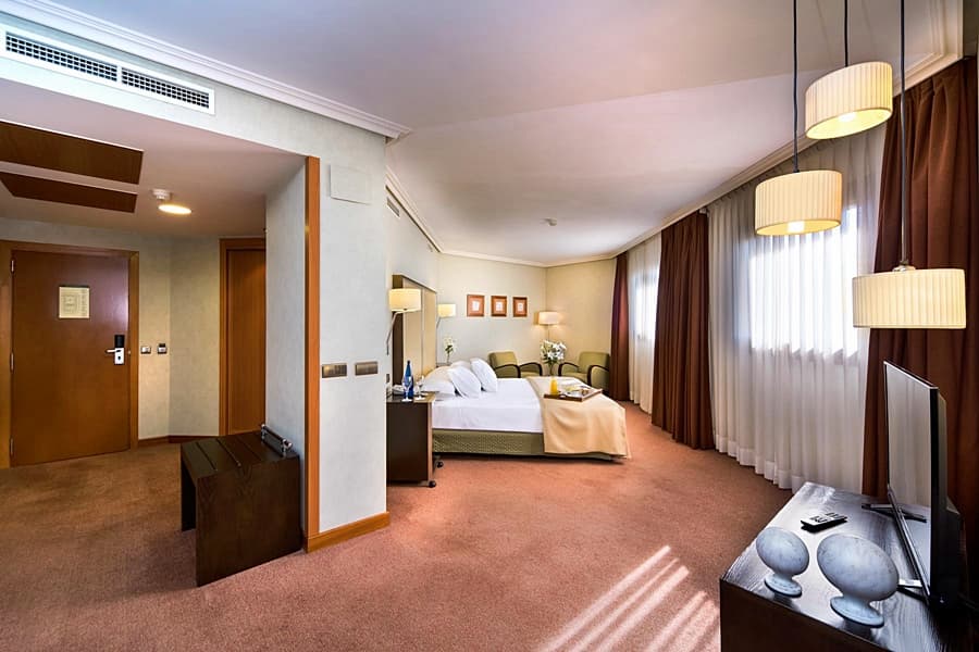 Hotel referencia en Getafe. Se encuentra en el corazón de la zona empresarial e industrial de Getafe, próximo a polígonos industriales, tales como el de Nuestra Señora de Butarque, San Marcos, La Carpetania, etc. y a cinco minutos en coche de la base aérea militar. Además, se encuentra muy bien comunicado por autovía con el parque Warner Bros, a sólo veinte minutos aprox. en coche. La estación de cercanías más próxima al hotel es Getafe Centro, a 10 minutos a pie. Está rodeado por zonas ajardinadas y ofrece a sus clientes un amplio aparcamiento exterior gratuito. Además, cuenta con 112 habitaciones espaciosas y dotadas de gran luminosidad natural, con un amplio cuarto de baño totalmente equipado. El hotel ofrece conexión WIFI gratuita en todas sus instalaciones. Este hotel es ideal para la celebración de reuniones de carácter profesional o familiar ya que ofrece amplias salas con luz natural y capacidad para 350 personas. Asimismo cuenta con un amplio restaurante buffet que ofrece un servicio de desayunos exquisito. NOTA: Niños: de 0 a 11 años. Los huéspedes a partir de 12 años se consideran adultos. *Posibilidad de check out online.
